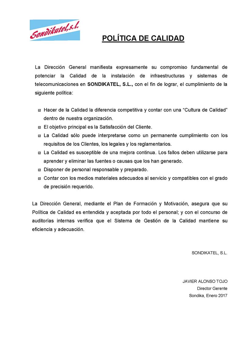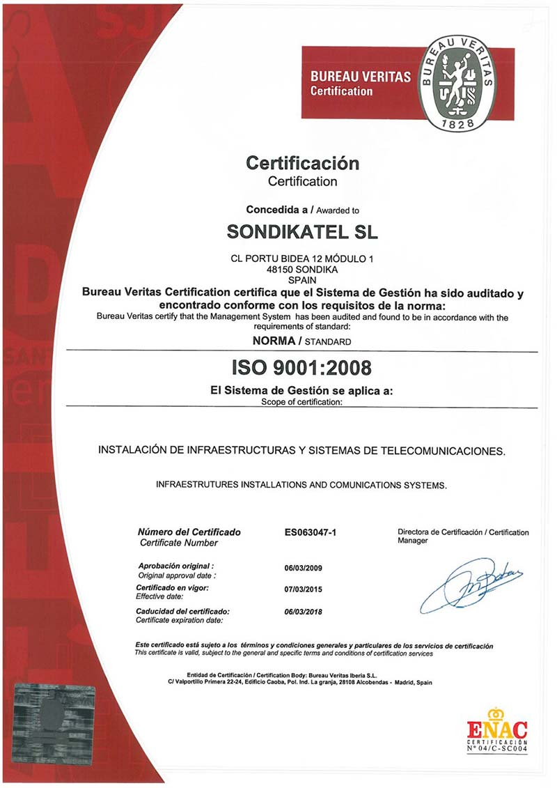 Nuestra empresa lleva trabajando en el sector como autónomos desde 1970. Nace con un carácter familiar hasta el año 1995, año en el que se crea la sociedad Alonso Telecomunicaciones, S.L., posteriormente denominada Sondikatel, S.L.